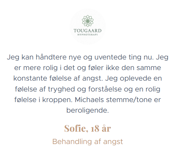Jeg har sammensat et særligt angstforløb for unge i alderen 15-19 år, hvor jeg over 2 sessioner giver den unge ro og tryghed og muligheden for at leve et mere frit ungdomsliv. Efter behov tilbyder jeg en tredje session til en god pris.